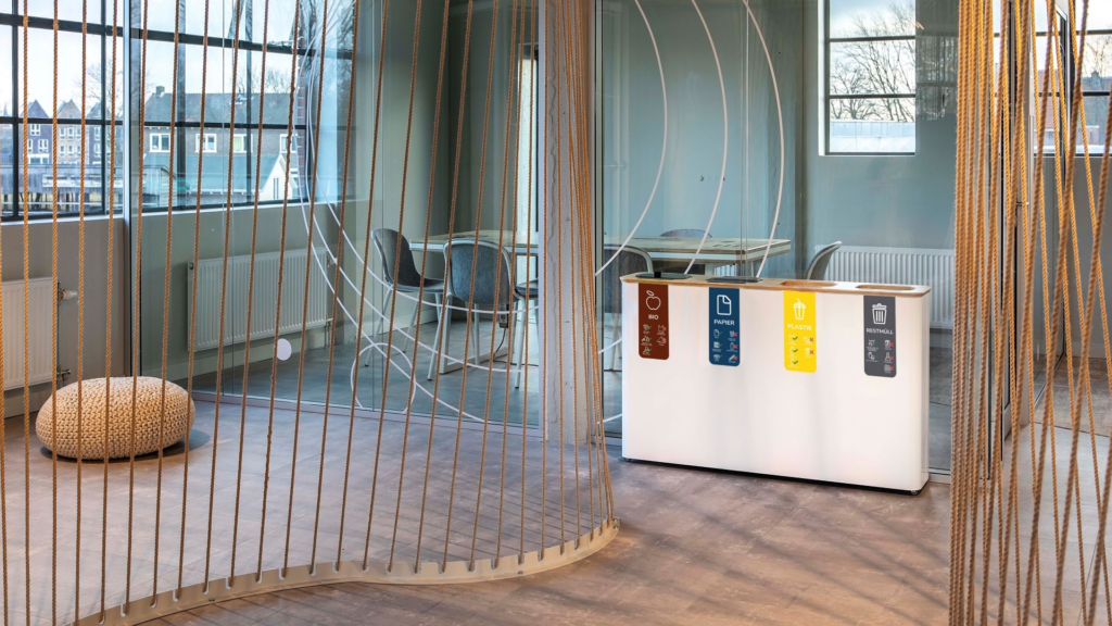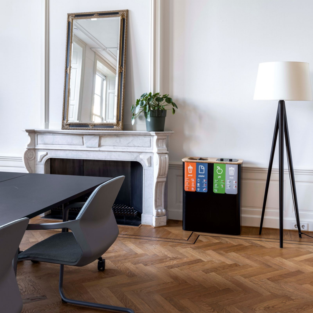 The result: BINBIN, litter bins with different compartments, made of (local) circular materials. Made in Holland, Dutch design that stands its ground and blends in with the interior. BINBIN is designed as a piece of furniture, a part of your interior. A showstopper that shows that you are a sustainable entrepreneur and that you care about the world around you.