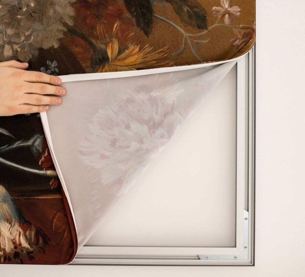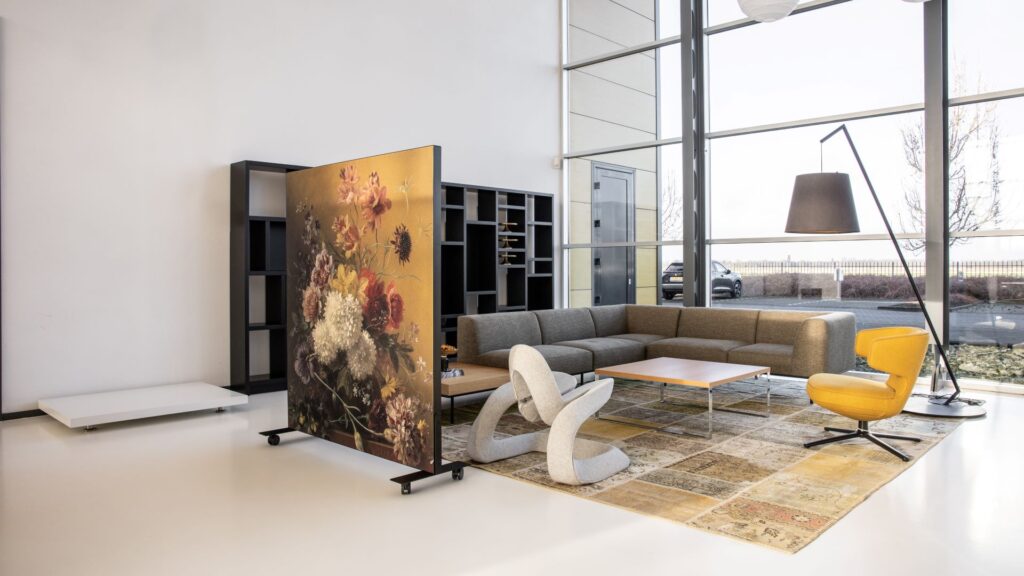 Our textile frame can be fully personalised, with standard frame colours as well as the option to have the frame powder-coated in a RAL colour of your choice. You determine the dimensions, choose from an extensive range of acoustic and fabric types, and make use of Art Heroes’ extensive image database.