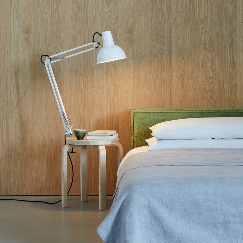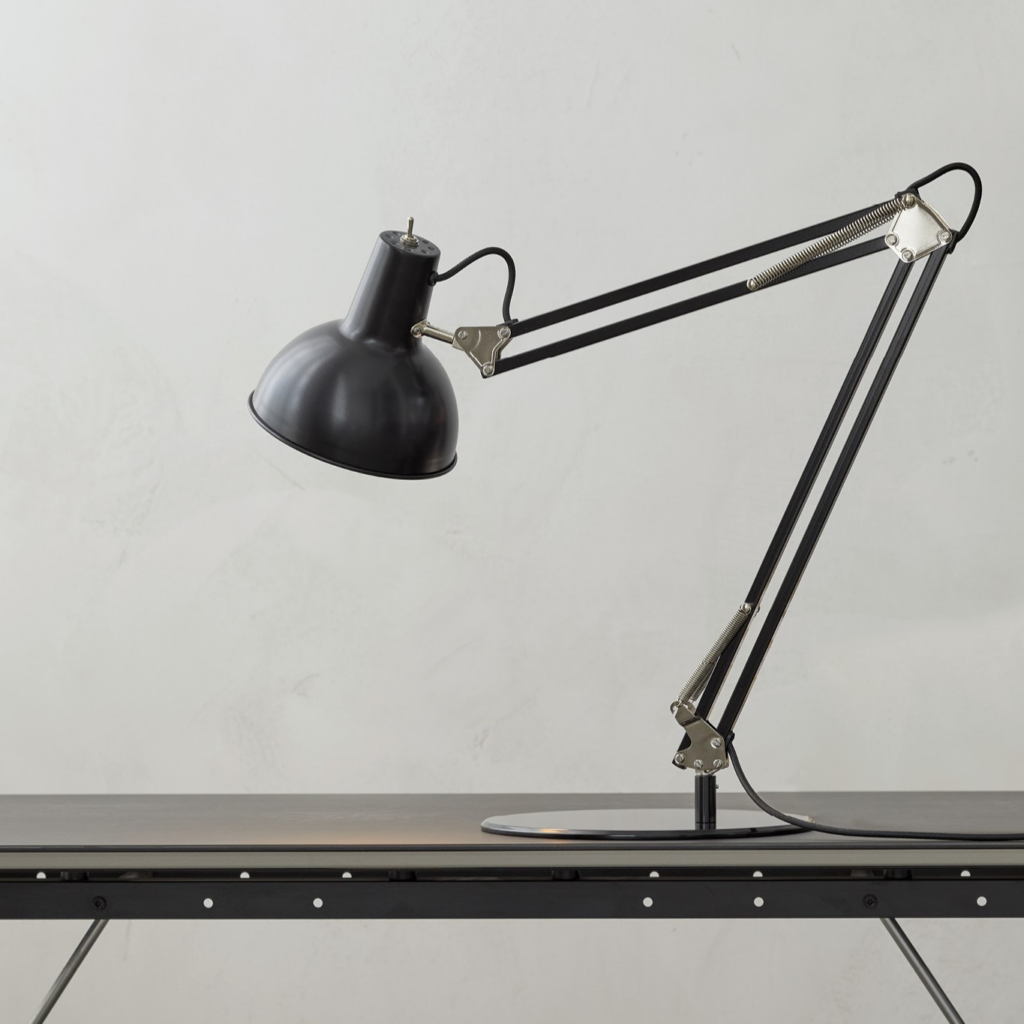 The spring-balanced lamps are the archetype among desk lamps – the German original from the 1950s. In its quality incomparable, available in classic black or white, equipped with black textile cable.