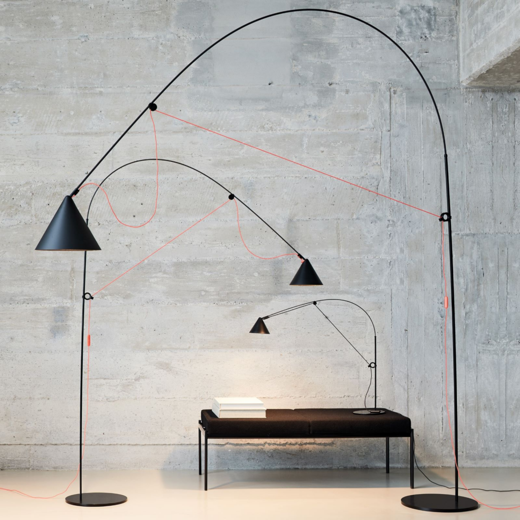 The K830 wand features a generous projection and versatile adjustability. The luminaire’s freely adjustable arms allow for flexible alignment. A special feature is the infinitely variable height adjustment by means of textile cable slidable in the tube and a counterweight to the lamp head.